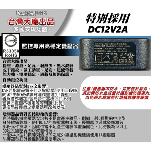 👍含稅+附鋁合金支架、上櫃大廠安規認證監控專用穩壓足瓦DC12V2A變壓器